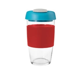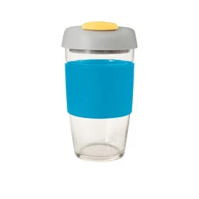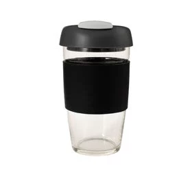 - Barista-friendly glass cup with a hard plastic lid, flip top cap with plug, and wide silicone grip
