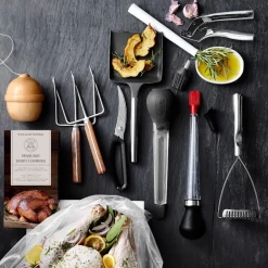 With 2 attachment heads the CuisiPro Turkey Baster included with this baster can be used as a basting brush for meats as well as pastries. The showerhead attachment gives a more even bast than the traditional turkey baster. Made of heat-resistant Tritan materials this turkey baster is extremely durable and dishwasher safe for easy cleaning.
