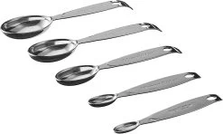 - Set of 5 Spoons: 1/8, 1/4, 1/2, 1 tsp, 1 tbsp/0.625, 1.25, 2.5, 5 ml