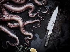 Global 3 Piece Cooks Knife Set. Set comprises of 8 chef knife, 5.5 utility knife, and 3.5 paring knife (G2, GS5, and GS38). Loved by professional chefs around the world, Global knives are an excellent choice for the serious home cook. The thin and razor-sharp Global blade allows the cook to cleanly slice through foods, preserving the integrity of the ingredient and maximizing its flavor.