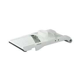 Featuring two-way slicing blades with the capacity to create slices between 0.5mm and 9mm in thickness, this jumbo vegetable slicer is a true workhorse. The obvious benefits of precision mandoline-style slicing with this uber sharp Vegetable Slicer include precision cuts, no electricity required and easy clean up. Constructed in Japan with blades made from high grade stainless steel and using only food safe and BPA-free materials, this slicer features a finger guard for your safety. Hand washing is recommended to retain the sharpness of your blades