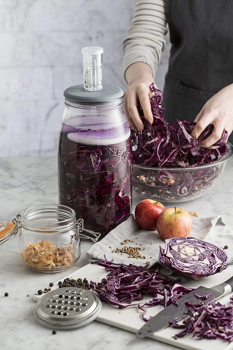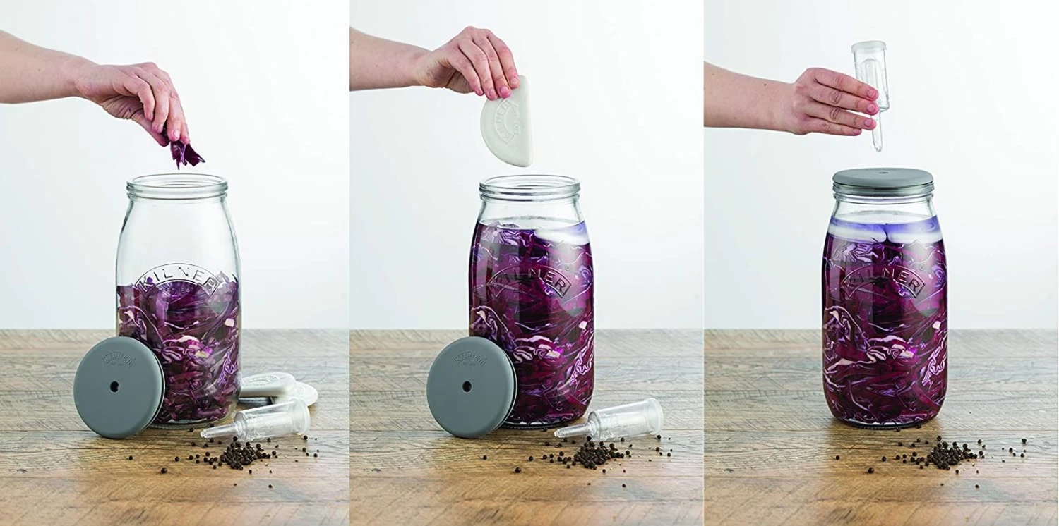 - Clear glass with embossed Kilner logo lets you check your day-to-day fermentation progress easily as well as ensure the required 6.5cm maximum headspace