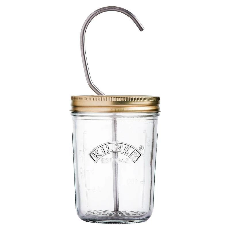 Making homemade mayonnaise couldn’t be easier with the Kilner Mayonnaise and Sauce Jar set. Simply fill the jar base with egg yolk, lemon juice, mustard salt, and pepper, then place the mesh plunger and oil dish inside the jar and tighten with the screw band. Drizzle oil into the oil dish whilst moving the plunger up and down. After about 3 to 4 minutes the consistency will be ready to serve. Other sauces such as Aioli and salad dressing can also be created using this handy kitchen gadget. The set includes a 2 piece sealing lid to store your homemade creations. Capacity: 350 ml.