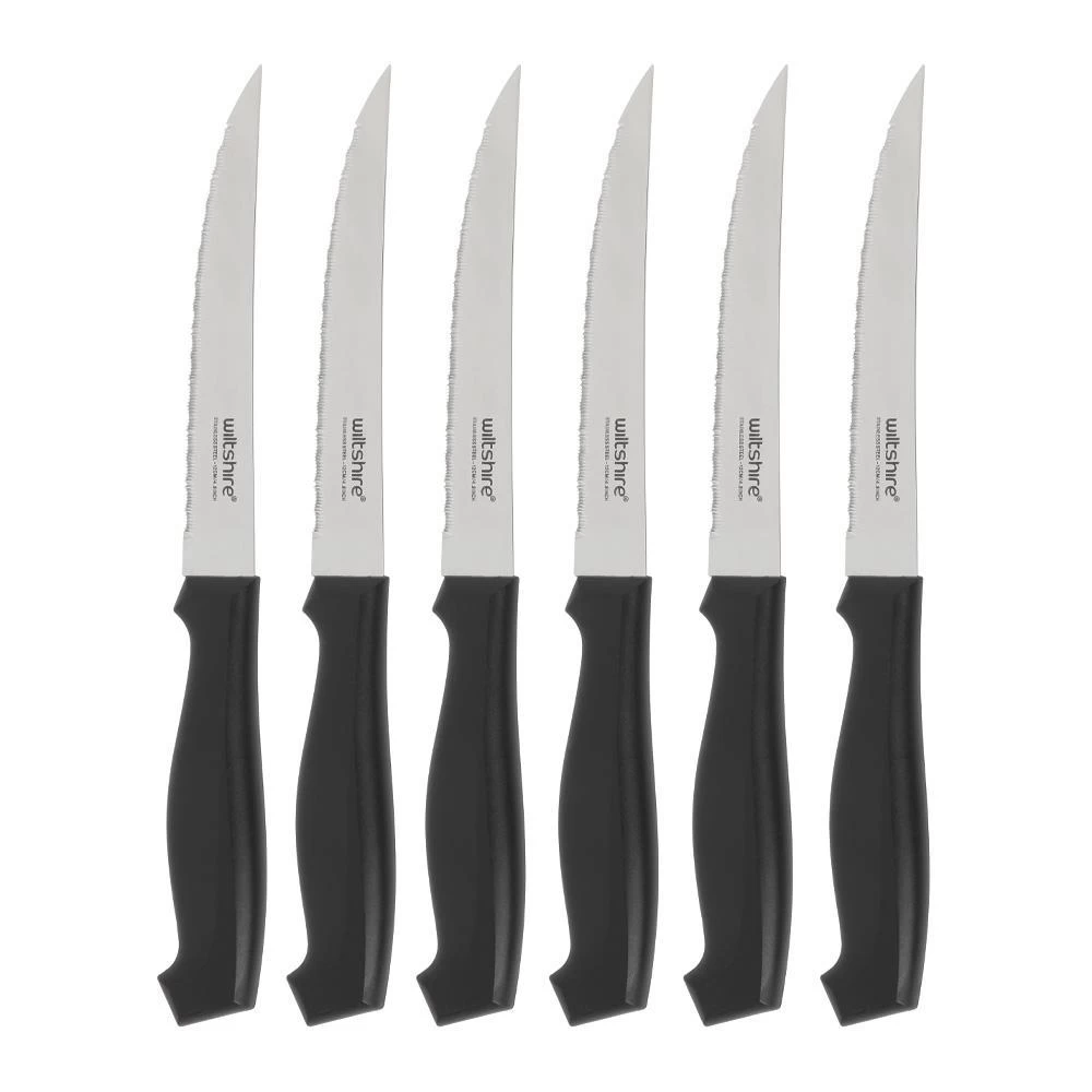 These fancy pants laser edge steak knives are the perfect foundation for every cutlery drawer. With ultra sharp and fine edges, these knives slice through thick cuts of meat like butter. The contoured handles provide greater comfort and control with each use. Perfect for a big steak dinner with a roast potato or two, this set is a sure winner.