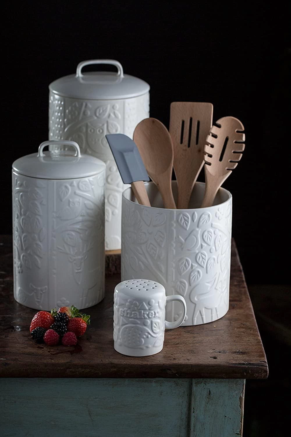 Mason Cash In the Forest range is intricately embossed with forest scenes inspired by tales of the mid-19th century. The Forest Utensil Jar is made from fine stoneware and is ideal for keeping your utensils, spoons, spatulas, and whisks organized.