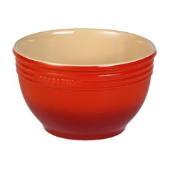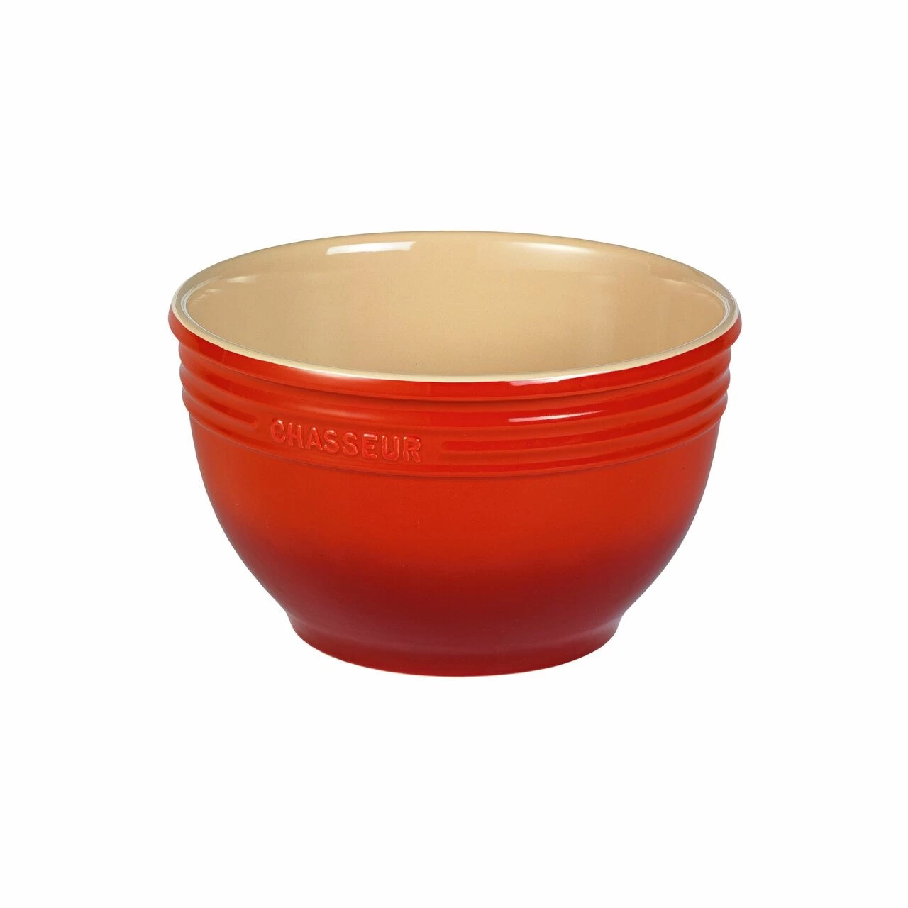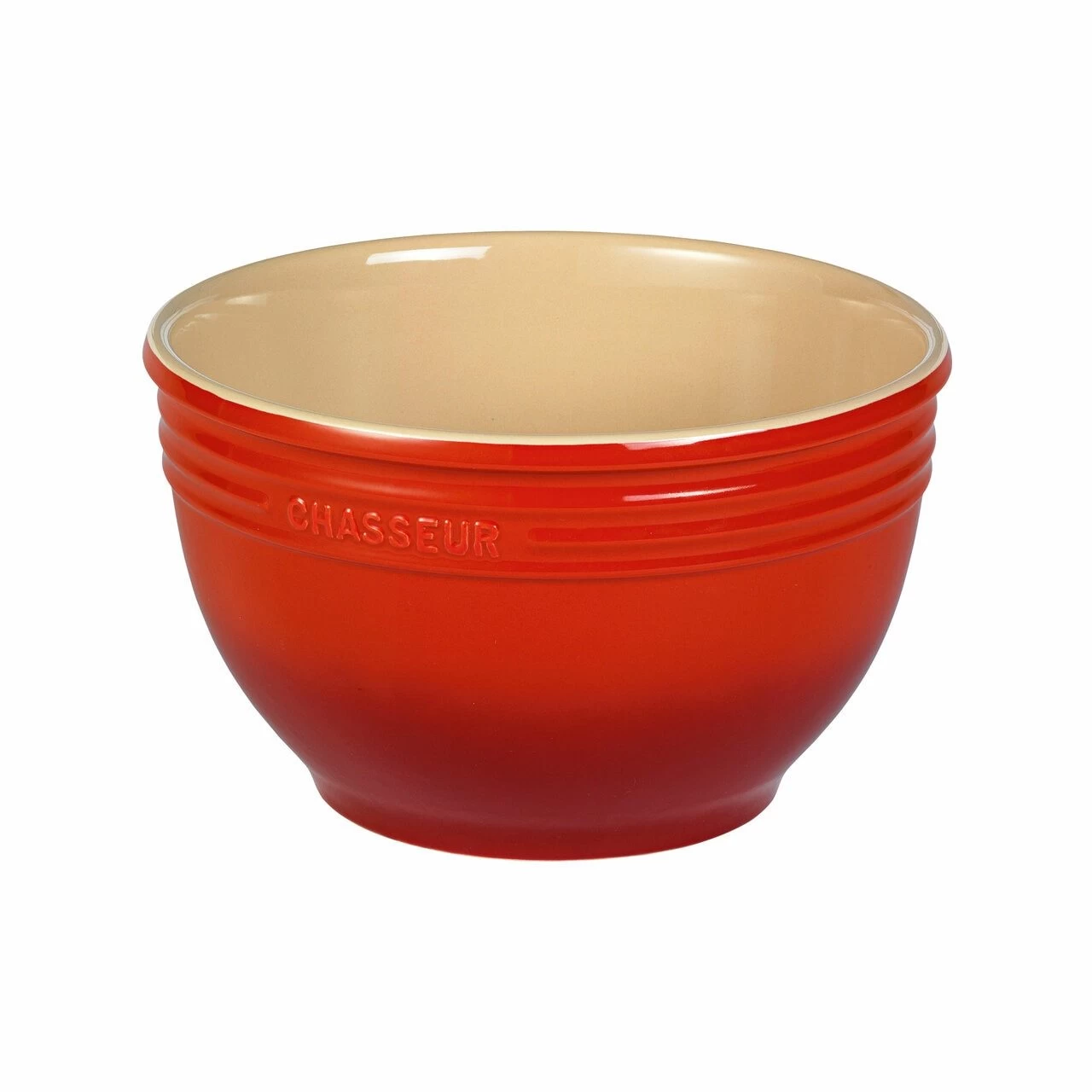 Mix marinades, cake batters, or dough with this generously sized Chasseur Mixing Bowl. Its grooved rim adds grip, while the enamelled surface ensures effortless clean-up. Made to withstand varying temperatures, this bowl is also safe for microwave, freezer, and oven use.