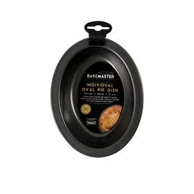 Bake a batch of pies in a jiffy with this 13.5cm x 10cm Bakemaster Non-Stick Individual Oval Pie Dish. Made from heavy-duty carbon steel, it lets you freeze savoury pies ready for baking directly in the oven as you need them. It also has a dual layer non-stick coating, wide rim for lifting, and deep shape suitable for all manner of savoury and sweet pies even individual flans.