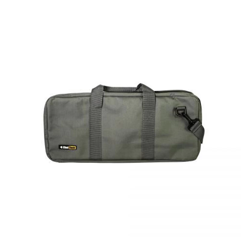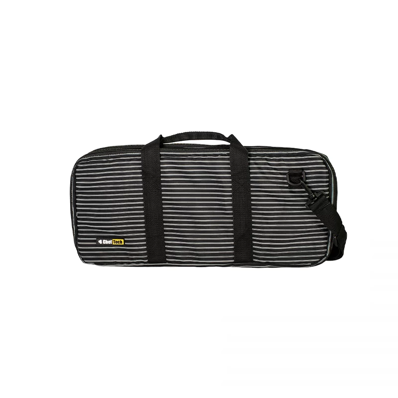 Cheech Knife Roll Bag contains 18 pockets and is crafted from padded 600 Denier Fabric and offers 3 separate vented compartments for knives and accessories. The bag rolls up comfortably for easy transportation with Handles, Shoulder Strap, and I.D Storage. Store and secure your knives, sharpeners, and accessories whilst on the go with ChefTechs Knife Roll Bag. Perfect for chefs, apprentice chefs, and culinary students, this luxurious knife roll bag features 3 separate zip compartments that allow you to easily organize up to 18 knives and accessories. This knife roll bag comes complete with a shoulder strap and a comfortable handle for easy transportation as well as an ID badge holder, making it easy to identify your bag.