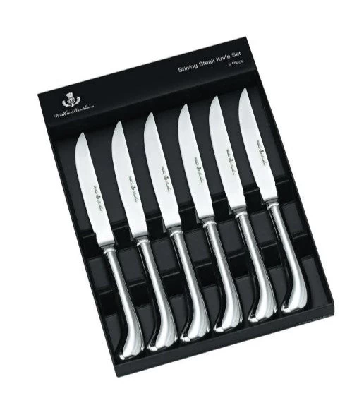 Big, fat juicy steaks require the appropriate tools. Enter the Wilkie Brothers 6pc Steak Knife Set. Made of durable 18/10 stainless steel, this set will cut through the toughest of meats with ease, and will add polish to your cutlery. With a mirror finish and good weight, this Wilkie Brothers Steak Knife Set is ideal for everyday use.
