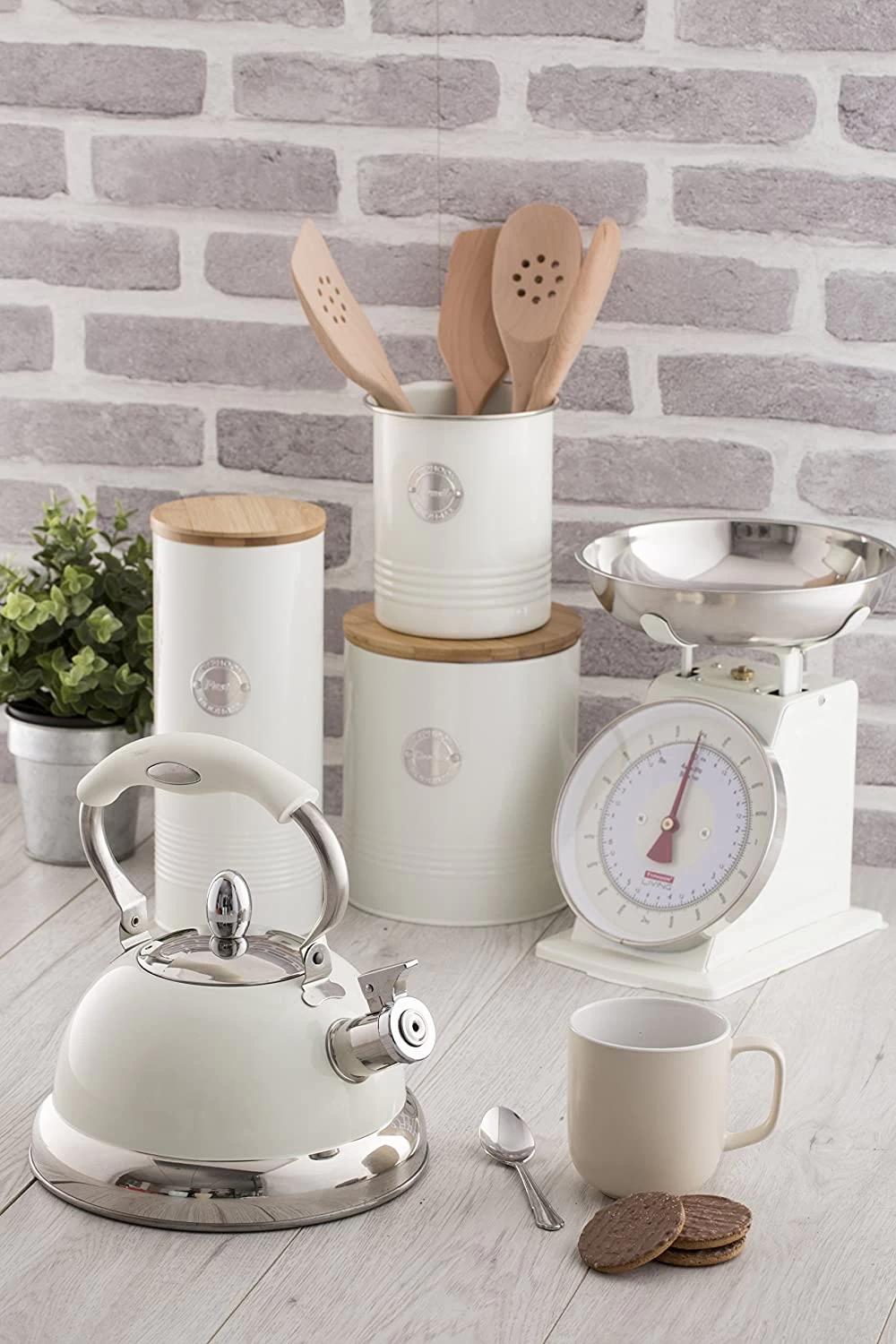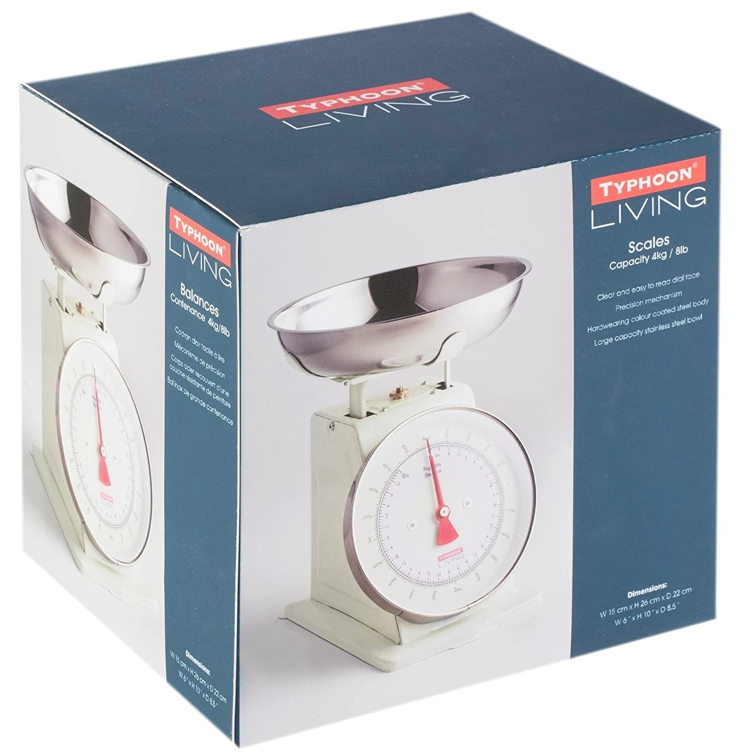 Measure your ingredients with precision and style with this Typhoon Living Mechanical Kitchen Scale in cream. This handy mechanical kitchen scale ensures precise measurements for baking and cooking. It features an elegant stainless steel bowl, easy-to-read dial and sturdy metal base, plus a range of matching tinware from the Typhoon living range.