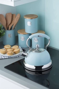 - Seamless construction in powder blue and silver-coloured label make the canister a stylish yet functional accent on your countertop