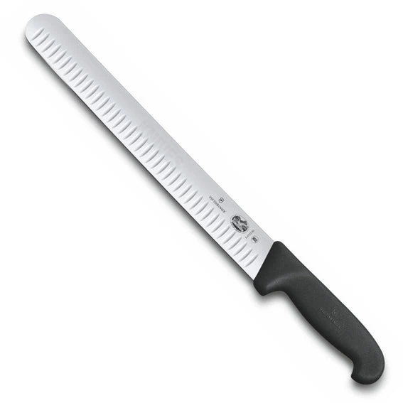 The exceptional straight fluting of this slicing knife prevents meat sticking to the blade as you cut through poultry and ham with the superbly sharp edge. The textured non-slip handle allows full control of this durable utensil and the lifetime guarantee provides you with complete confidence in this knife and the entire range of Victorinox utensils.